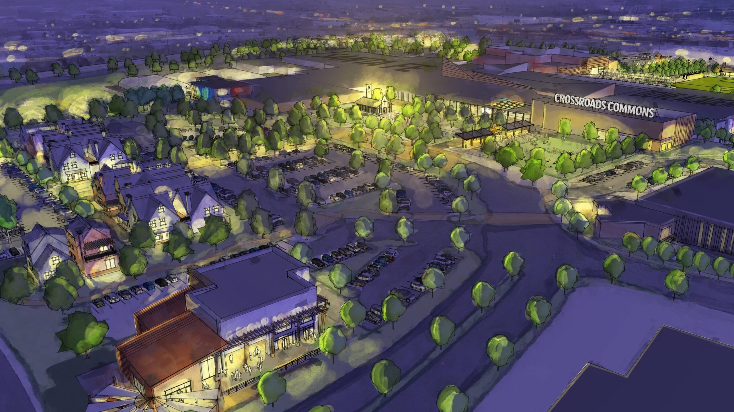 The rest of the property—the mall concourse, the other two anchor stores, and 64 additional acres—was acquired by the nonprofit, the Crossroads Renewal Project (CRP), in order to develop with a mix of healthcare and service providers.